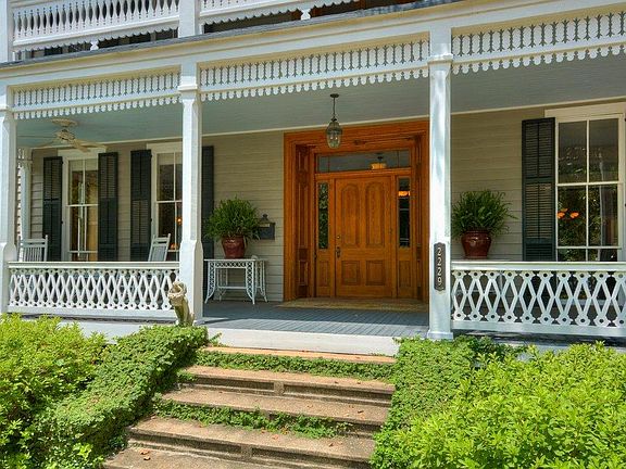 Award-winning total renovation completed 2001. DependaCoat Lifetime Architectural Coating completed 2015. Spacious home, spacious rooms. Perfect for large/extended family, and entertaining. Abundant antique heart-pine. Stainless caterer's kitchen. Five Bedrooms and five Bathrooms upstairs. One Bedroom with attached Bathroom on main level. Sofabed converts library to seventh bedroom with private bath. Main floor handicapped accessible. Flexible floorplan. Climate-controlled 25 x 12 cedar attic space with permanent stairs. Much additional storage. Gas lines to all fireplaces. Eighth full bath in large laundry/utility room. 6-car garage. In addition, there is a furnished detached cottage in the rear renting for $1,095/mo.