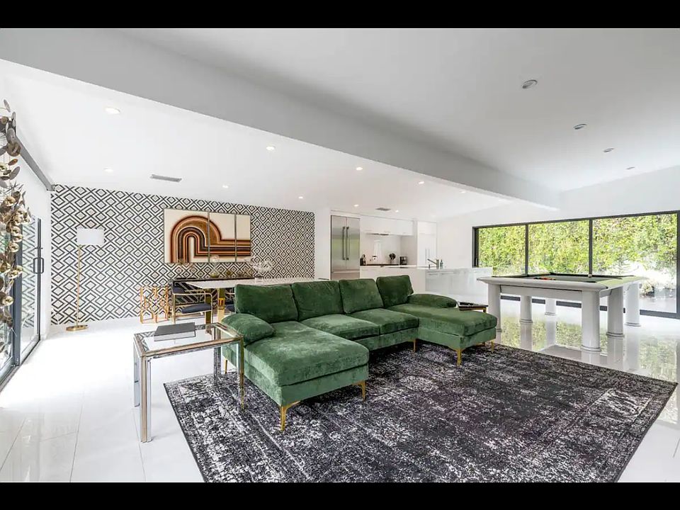 FULLY FURNISHED. LINENS. DISH-WARE. STOCKED KITCHEN. SHORT TERM OR LONGER TERMS AVAILABLE. Welcome to this breathtaking FULLY FURNISHED home in the prestigious Hollywood Hills, where modern sensibility and exquisite details come together to create a truly remarkable experience. Located in the coveted Hollywood Dell neighborhood. Offering unparalleled privacy, this single-level gem showcases an open floor plan that embodies luxury living at its finest. Indulge in the ultimate relaxation with the lavish jacuzzi hot tub, perfect for unwinding after a long day of exploring the city. Have a game of pool while BBQ'ing with friends or relaxing alone in your own private back yard oasis. Welcome to your exclusive retreat in the heart of the Hollywood Hills - a captivating fusion of luxury, sophistication, and contemporary design. Discover a modern oasis that has redefined the concept of living in this stunning two-bedroom mid-century marvel. As you step through the grand entrance, floor plan, seamlessly merging indoor and outdoor spaces, creating a harmonious flow throughout the home. The abundant natural light floods in through floor-to-ceiling windows, a complete glass door wall that opens to allow that true indoor/outdoor space in this illuminating sleek and chic interior. 12 x 24 white tiles throughout. Designed for those with discerning tastes, the kitchen is a culinary dream, equipped with top-of-the-line German appliances that elevate cooking to an art form. Huge island with custom cabinetry. Across from a full marble custom bar equipped with a flat screen tv. This house is an entertainers dream! Whether you're an aspiring chef or just love to dabble in culinary delights, this kitchen will inspire your creativity. The living room is a modern sanctuary, featuring plush furnishings and a generous sofa that invites you to unwind and revel in the panoramic views of the Hollywood Hills. Your entertainment needs are fully catered to, with state-of-the-art technology and a premium sound system that immerses you in a world of audiovisual excellence. Massive Jonathan Adler marble table that seats 6. The two bedrooms are nothing short of luxury. King size bed in the primary bedroom and a queen sized in the 2nd. Awaken to breathtaking vistas of the cityscape, ready to embrace the day with renewed energy. However, the true star of this abode lies outside - the vast backyard is an entertainer's haven. With a fire pit casting a warm glow under the starlit sky, an inviting barbecue area for hosting unforgettable gatherings, and a bubbling hot tub to soak your cares away, every moment spent here will be etched in your memory. This illustrious home has not only captured the hearts of those who've had the privilege of experiencing its allure but has also earned architectural accolades for its visionary design. Short term or long-term lease available