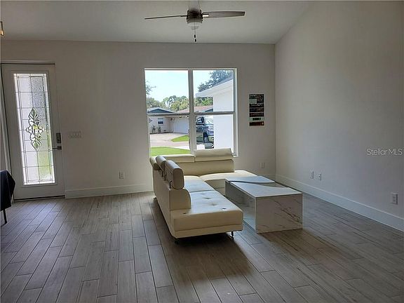 Under Construction. BEAUTIFUL GREAT ROOM SPLIT BEDROOM FLOOR PLAN. 3 bedrooms, 2 baths, 2 car garage, and plenty of room for a pool. Glass door entry opens to the spacious great room with vaulted ceiling, sliding glass doors to the lanai and is open to the beautiful kitchen with center island, granite counters, wood cabinetry with soft close drawers and doors and stainless steel appliances. The dining area plus breakfast bar afford plenty of space for family meals. Beautiful porcelain tile floors throughout! The master bedroom suite includes a coffered ceiling, a large walk-in closet, master bath with dual sinks, granite counter and walk-in shower. The 2 guest bedrooms share the guest bath with matching wood cabinet and granite counter. The laundry room leads to the 2 car garage. Other features include 30 year asphalt shingles, impact resistant windows and doors, 2.5 ton A/C with air returns in every room. See builder's spec sheet for details. Room sizes are approximate. Photos are from the similar model at a different location and may show some upgraded features and extras which may vary according to customer's requests. NOTE: Taxes reflect land only.