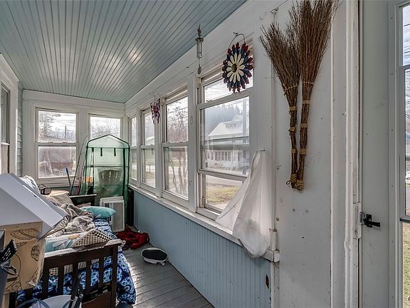 Priced for a quick sale! This home offers an enclosed front porch that leads into the large living room, formal dining room, barn doors lead to the 1st floor full bath that includes laundry hook-ups. The kitchen offers ample counterspace, cabinets & includes appliances. A 2nd den/living room off the kitchen has a pellet stove for those chilly days. Upstairs you will find 3 bedrooms all with closets & half bath that has plumbing available to add a shower & make a full bath. Outside is a back deck overlooking the yard, large barn style garage with an upstairs for additional storage. Almost half an acre just outside the village limits so no village taxes. Located 15 minutes to Fort Drum.