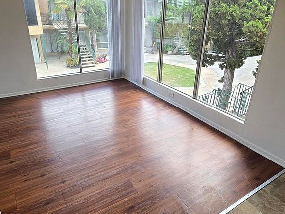 This spacious home features a large living room with huge bay windows that overlook the courtyard. LVP Flooring through out. Kitchen has a gas range and formica counter tops. Fresh paint though out.
