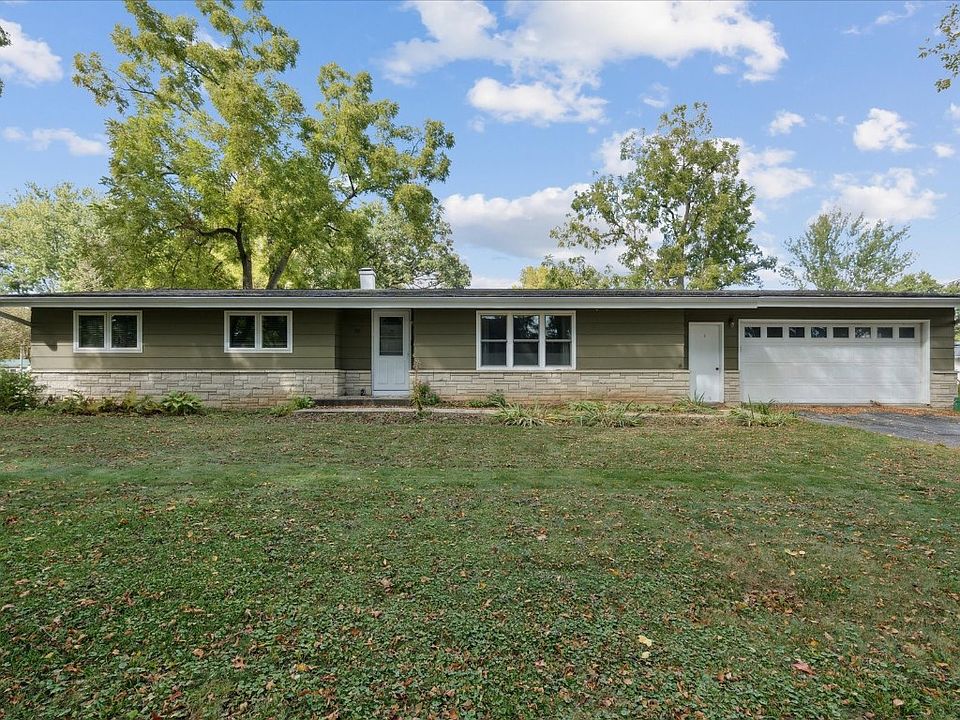 Welcome to this beautiful ranch-style home nestled on a spacious corner lot near parks and local amenities. Boasting large windows & vaulted ceilings, this home is filled with natural light & an open, airy feel throughout. The heart of the home features a generous living room that flows seamlessly into the open-concept dining room & kitchen. Step out from the dining room onto a deck, overlooking the spacious yard. This home offers 3 comfortable bedrooms, including a primary suite with its own private half bath. A full bathroom serves the additional bedrooms & guests. Throughout the main level, you’ll find stunning hickory engineered wood flooring that adds warmth & elegance. The unfinished basement provides ample potential to add to your living space, complete with plumbing in place for a future bathroom. Additional highlights include a 2-stall attached garage. Don’t miss your chance to own this inviting & versatile home.