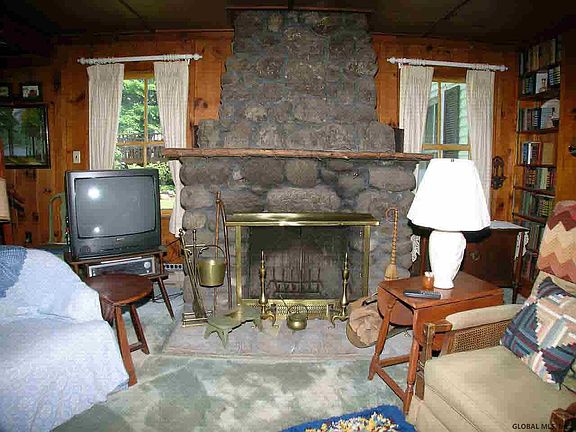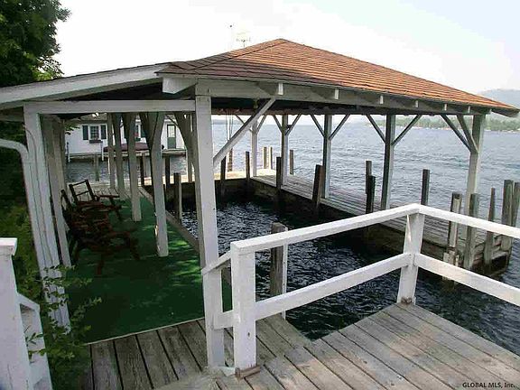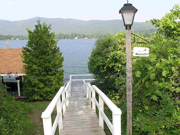 TIMELESS! Old Lake George with breathtaking lake and mountian views ! Charming turn of the century 4BR winterized home . Knotty pine livingroom with stone fireplace, Adirondack vine entwined stirway , and lake view dinning alcove . Inviting wrap arround screened porch .Excellent F shaped crib dock complex with waters edge deck overlooking crystal waters. Lush lawn with mature cedar trees , Turn Key , basic furnishings included ready for you to create your own cherished times -- Dock