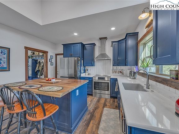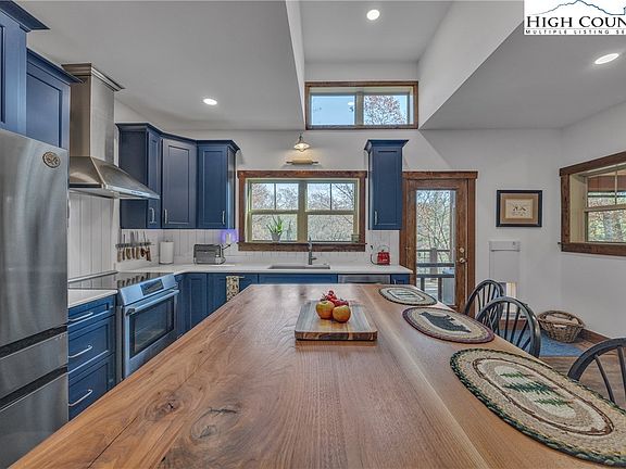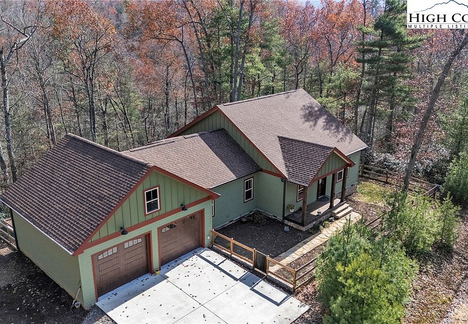 Discover this practically brand-new, move-in ready mountain home perfectly situated on 2.01 acres in the gated community of Brightwater on the New River, just 15 minutes from downtown West Jefferson. Built in 2023 with exceptional craftsmanship and attention to detail, this 2-bedroom, 2.5-bath home blends mountain charm with modern comfort. Step inside to find an inviting open floor plan filled with natural light, highlighting the warmth of the wood trim and high-end finishes throughout. The kitchen features beautiful quartz countertops, a shiplap backsplash, custom cabinetry, stainless steel appliances including a Bosch convection oven with induction cooktop, and a black walnut island countertop, ideal for cooking and entertaining. The kitchen opens to a bright dining area and spacious living room with vaulted ceilings, abundant windows, and access to the covered back porch. The primary suite offers a luxurious en-suite with a custom double-sink vanity, a stunning tiled shower, and an open closet. The guest bedroom also includes a private full bath for comfort and convenience. An inviting flex room provides an ideal space for today’s work-from-home lifestyle, perfect as an office, study, craft or hobby room, or even a small guest suite. A spacious mudroom/utility area serves multiple functions as a laundry, walk-in pantry, and pet-friendly station with space for coats and gear. The oversized two-car garage offers ample space for vehicles and storage, with attic access featuring a wood-truss floor, ideal for future finishing as additional storage or a bonus room. Additional features include a programmable dog door synced to your pet’s collar for easy outdoor access, raised garden beds in both the back and side yards, and a partially fenced area perfect for pets or children (not enclosing the full acreage). Surrounded by mature hardwoods and lush mountain foliage, this property offers peace, privacy, and the soothing sounds of nature. Brightwater on the New River is gated, well-established community with an POA, offering residents access to a beautiful riverfront park – perfect for fishing, floating, or quiet picnic by the water. Ideally located just 5 minutes from New River access, 15 minutes to the Blue Ridge Parkway, 20 minutes to West Jefferson, and 30 minutes to Boone, this location offers the best of mountain living with easy access to nearby towns and recreation. Don’t miss this rare opportunity to own a like-new, custom mountain homes.