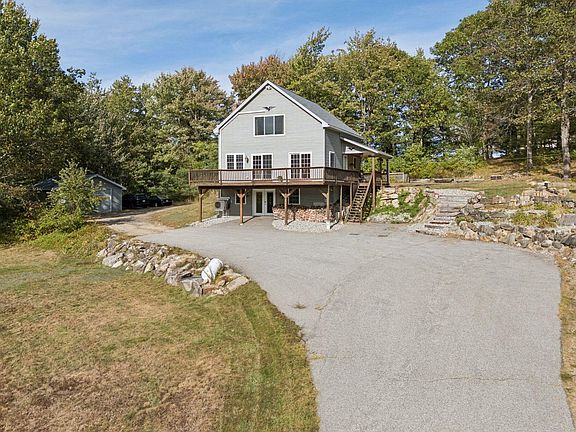 Move-in ready contemporary on 2.25 peaceful acres with sweeping views of Pickett Mountain and the surrounding foothills. The main level offers an open kitchen/dining/living layout with an updated kitchen featuring quartz countertops, ceramic tile, and modern fixtures. A stone-hearth wood stove anchors the living room, and sliders from both dining and living areas lead to an expansive wrap-around deck, perfect for morning coffee and sunset dinners. Upstairs, the primary bedroom showcases cathedral ceilings, double closets, and large windows that frame the view; two additional bedrooms and a full bath provide flexible space for guests, office, or hobbies. The daylight, walk-out lower level adds 896± sq. ft. with a full bath and French doors to the yard, ideal for a family room, guest suite, or recreation space. Outside you'll find a detached 1-car garage, garden shed, and ample yard for gardening and play. Minutes to Silver Lake and the NH border; approx. 45 minutes to the Sebago Lakes Region with easy access to Portland and Portsmouth. Year-round Maine living with room to breathe and a view you'll use every day.