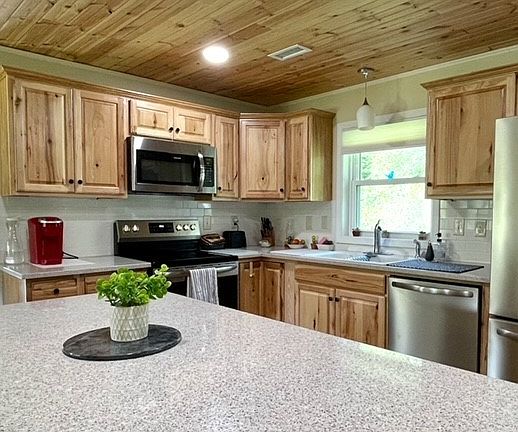 A must-see, this home has been completely renovated and finished in 2024. It's a labor of love, featuring an open floor plan, a gas fireplace, and an inviting kitchen with an island perfect for entertaining. Abundant windows offer views of the scenery and local wildlife that frequents the yard. The property includes a detached one-car garage with additional storage on the lower level. There's an RV hookup complete with a 50 amp breaker, water, and sewer. All plumbing and electrical systems have been updated. The expansive three-plus acres are ideal for horses, boasting a stream, blueberry bushes for pie-making, and breathtaking views. Enjoy the new covered deck and beautiful sunrises. With its light, airy feel and all the modern updates, this home is ready for you to move in.
