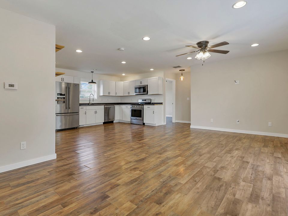 Great location for commuter & close to shopping, restaurants, schools, and public park. Heath City Schools. Move-In Ready! Updated Ranch with open concept living, 1,421 square feet. Updated Kitchen with stainless steel appliances, gas oven/cooktop, dishwasher, large refrigerator with ice/water and freezer drawer, and abundant cabinet space. Owner bedroom suite with large bath w/walk-in shower and walk-in closet. Two additional bedrooms (opposite side of home) with large closets and ceiling fans. Updated bathrooms. Utility room with washer/dryer hookups. Attractive laminate flooring throughout. Open concept living room w/built-in shelving and large floor-ceiling windows and ceiling fan. Replacement windows with screens. Gas forced air heat and central air conditioning. Cement patio and large yard with 6' privacy fence for outdoor enjoyment and storage shed. Available October 1, 2024. No Smoking. Pets - Maybe permitted. Property Owner will consider with strong rental application and non-refundable pet deposit (TBD). One year lease minimum. Tenant pays all utilities: electric, gas, water and maintains lawn/snow removal. Off-street parking.