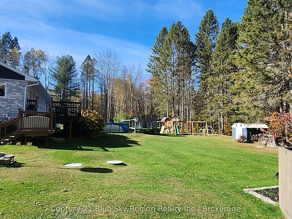Private Bungalow tucked away on nearly 3 Acres. It offers the perfect blend of privacy, comfort, and functionality. The open-concept living and dining area is ideal for both everyday living and entertaining, featuring oak hardwood flooring and seamless flow throughout. The custom kitchen is a chef's dream, complete with large granite counter tops, vinyl plank flooring, a built-in oven/microwave combo, and ample cupboard space. The main level includes four well-sized bedrooms and a stylish 5-piece bathroom. Downstairs, you'll find a generous rec room, a large 5th bedroom, the laundry facilities, and a large unfinished family space that's insulated, wired, and ready for drywall. Outside, enjoy approximately an acre of cleared, landscaped yard with nearly 2 acres of natural bush. Relax or entertain on the expansive front and back decks, take a dip in the pool, or utilize the detached double-car garage.