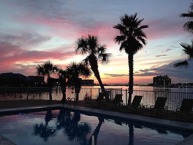 This luxury condominium is located in Destin Harbor Resort West, a gated medium-rise complex tucked away on the south side of Destin Harbor in trendy Holiday Isle. The unit is completely renovated: new kitchen cabinets & wet bar with granite counter tops, travertine stone flooring throughout, fresh painted, and two exquisitely tiled bathrooms. You will find stunning views from the living space as well as the two bedrooms. Two tiled balconies provide a place to relax. This unit comes with a l