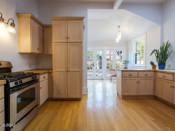 A 1898 territorial colonial revival brick home in the Armory Park Historic District. 3 bed/2.5 baths and 1 bed/1 bath guest unit. Features wood floors, high ceilings, large windows, oversized thresholds, french doors, 2 gas fireplaces, Venetian plaster, exposed red brick, an expansive front porch, Italian glass tile, and a soaking tub. The spacious upstairs is light-filled with a large north facing deck, sunset views and bonus space not counted in square footage. Home has a new roof, new HVAC, fresh paint inside and out, lots of storage areas and a basement. Surrounded by mature trees, a front yard cactus garden and large backyard with vehicle gate. Guest unit with private front porch entrance can be rented or incorporated into the main house. An incredible and unique historic showpiece.