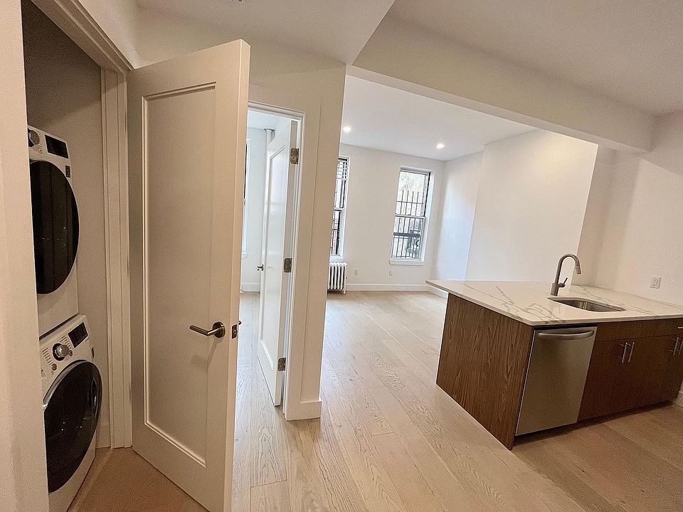EV223 3 Bedroom, 2 Bathroom with Washer/Dryer in unit. Introducing The Newest Rental Collection in The East Village. Spanning from East 12th Street to East 5th Street across 15 buildings, offering one, two, three and four bedroom homes. The Residences Kitchens: Each newly renovated residence features open kitchens with White Matte upper cabinets and walnut Grain Lower cabinetry accompanied by Quartz Master Organic White Countertops. All kitchens are equipped with Moen, Samsung and Bosch Appliances. Bathrooms: All Bathrooms feature Opal Black Hexagon tile with Metro White Matte Vertical Stacked Wall tile, brushed nickel faucets and bathroom accessories. In addition, each bathroom comes with Brown Stained Ash Cabinetry and Custom Glass Showers or Soak in Tubs. Details: All units feature light oak modern, elegant engineered wide plank flooring for max durability. Select units offer Washer/Dryer Recessed Lighting Throughout USB outlets This Unit: Prime east village location in a charming street. All bedrooms fit a queen + desk + dressers. The Lifestyle: All properties sit at the cross roads of the most diverse restaurants, nightlife, parks and key subway hubs. All of our units are located on quiet tree lined streets providing a balance of City Life and Serenity