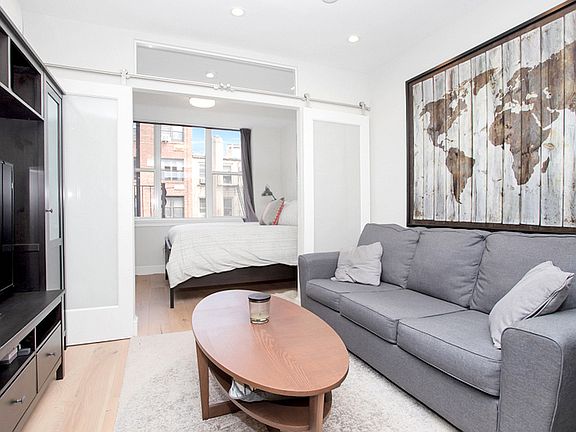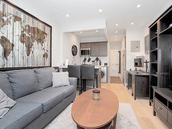 Welcome home to 223 East 74th Street. ELEVATOR BUILDING Incredible SUN and views of the quiet gardens Walk in and be greeted by an open concept, complete with a spacious living area and kitchen. The kitchen features beautiful white countertops and marble backsplash and charming cabinets. The stainless steel appliances complete the kitchen and include a washer/dryer, stove/oven, microwave and dishwasher. The entire apartment has central a/c for your comfort and ease! The living room is large enough for your full sized couch and dining area. The entire unit has been outfitted with central ac! Through two doors you'll find a Queen-sized bed area and large picture windows that face the gardens and a ton of green and sky. There is a BIG closet that is customized to fit your needs! Elevator building just a few blocks from the entrance to the 6 train as well as the Q 2 blocks away virtual doorman entry system in place! pets ok be the first