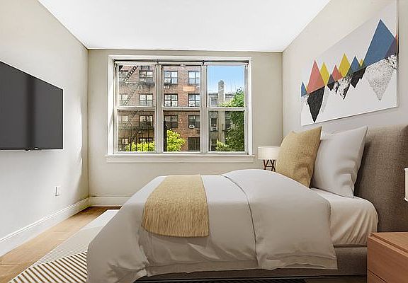 Welcome home to 223 East 74th Street. ELEVATOR BUILDING 4th floor with incredible SUN and views of the quiet gardens Walk in and be greeted by an open concept, complete with a spacious living area and kitchen. The kitchen features beautiful white countertops and marble backsplash and charming white cabinets. The stainless steel appliances complete the kitchen and include a washer/dryer, stove/oven, microwave and dishwasher. The living room is large enough for your full sized couch and dining area. The entire unit has been outfitted with central ac! Through two doors you'll find a Queen-sized bed area and large picture windows that face the gardens and a ton of green and sky. There is a BIG closet that is customized to fit your needs! Elevator building just a few blocks from the entrance to the 6 train as well as the Q 2 blocks away virtual doorman entry system in place! pets ok be the first