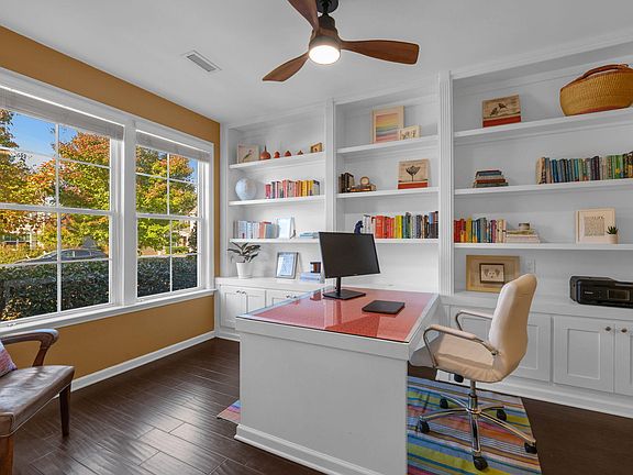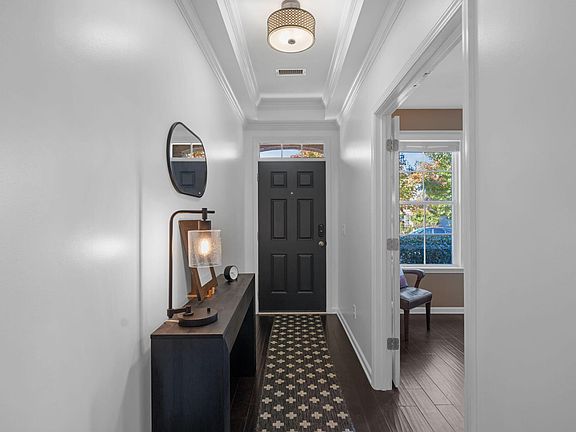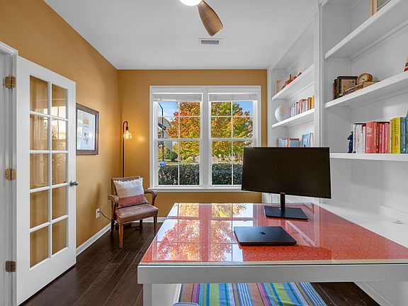 Welcome home to 223 Empress Road, a beautifully designed three-story residence located in the highly sought-after Waterstone neighborhood. Ideally situated just minutes from I-40, UNC Hillsborough Hospital, downtown Hillsborough, and a short drive to downtown Durham or Chapel Hill, this home offers the perfect balance of comfort, accessibility, and lifestyle. Step inside to discover a thoughtful floor plan with timeless finishes and quality craftsmanship throughout. The main level features hardwood flooring, a private office with French doors, and stylish built-in bookcases. The open-concept layout seamlessly connects the kitchen, living room, and dining room, creating an ideal space for entertaining and everyday living. The kitchen is designed to impress, with a gas range, an expansive center island, and pantry. The living room centers around a gas-log fireplace with side cabinets and shelving, adding warmth and character to the space. On the second floor, you'll find three spacious bedrooms and a conveniently located laundry room. The owner's suite offers luxury and comfort with a tray ceiling, large walk-in closet, and a spa-inspired bathroom featuring a garden soaking tub and a stand-alone tile shower. The two secondary bedrooms share a full hall bathroom. The third floor offers remarkable flexibility with a private fourth bedroom, a full bath, walk in closet and a charming window seat with built in cubbies This space is ideal as a guest suite, bonus room, teen retreat, or dedicated creative space. Outdoor living is just as inviting, with a fully fenced backyard, a covered flagstone patio, and a flat driveway and lot that offer convenience and ease. The two-car garage provides ample storage functionality and electric car charger. Neighborhood pool, playground and miles of sidewalks. 223 Empress Road is more than just a home—it is a lifestyle. With its open floor plan, thoughtful design, and unbeatable location close to major conveniences, this property is ready to welcome its next chapter.