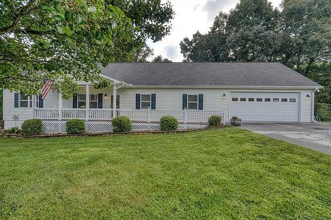 Welcome to this charming one-level ranch in the well-established Meadows of Ivy Log neighborhood! Situated on flat, paved roads perfect for walking and biking, this home offers easy living with an open floor plan and thoughtful design. Featuring three bedrooms and two full baths, the home boasts LVP flooring throughout and a bright, airy kitchen with a center island, solid-surface countertops, and plenty of workspace. The great room showcases a gas log vented fireplace, while the dining area opens to a screened back deck, ideal for relaxing and enjoying all four seasons in the mountains. The oversized owner's suite includes double vanities, a tiled shower, and a walk-in closet, while the split-bedroom layout provides two additional bedrooms and a full bath. A convenient mudroom/laundry area with a sink leads to the two-car oversized garage, offering attic storage and a workshop area. Additional features include low-maintenance vinyl siding, an open back deck perfect for grilling, a 10x12 storage shed for yard equipment, and a concrete-floored crawlspace. Enjoy the peaceful backyard overlooking a stream with a partially wooded setting and frequent visits from neighborhood wildlife. All of this is just minutes from Lake Nottely, where you can enjoy boating, fishing, kayaking, and swimming!