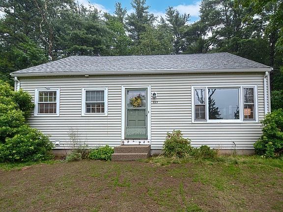 Welcome home to 223 High Street! This charming, custom-built, four bedroom Cape has great curb appeal and is nestled on a scenic one-acre hilltop setting surrounded by nature. First floor has a front foyer & hall, spacious front-to-back living/dining room combo w/hardwood floors, arched doorways and many windows allowing lots of natural light to filter in. Kitchen has wood cabinets, a porcelain sink & provides access to the back yard & gardens. Off the kitchen, the hallway leads to two bedrooms w/hardwood floors, linen closet & full bath. Second floor features the main bedroom w/hardwood floors, a full bath w/shower, bonus room perfect for an office or craft space, plus the fourth bedroom. Great basement space for hobbies or future finishing. Detached one-car garage w/extra work space and loft above! New 4 bedroom septic just completed. Enjoy a convenient location near major routes, the train and all Holliston offers including the rail trail, Lake Winthrop & a quaint downtown area!