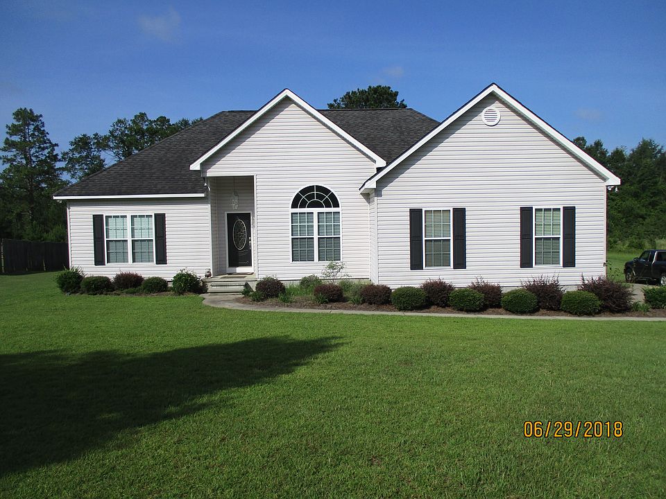 Three bedroom, 2 full baths, laundry room, walk-in closet in master bedroom. Jetted tub in master bathroom, separate shower in master bath, dining room. Ceramic tiles in the master bathroom, kitchen, & hallway bath. Carpet in bedrooms. Hardwood in dining room. Split type central heat pump system (6 years old). Electric logs in fake fireplace in family room. Ceiling fans in almost every room. Rear deck with deck board floor. 2 car garage with automatic rollup door. Concrete driveway. 50 gallon electric water heater located under house. Septic tank in right side yard. Move in ready.