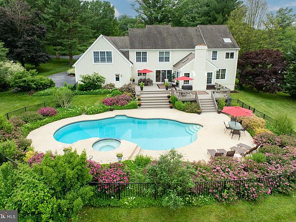 Discover a serene retreat brimming with extraordinary features, nestled between Longwood Gardens and Kennett Square Golf & Country Club. This meticulously maintained home has been thoughtfully updated with a new gas furnace and AC system, and boasts a stunning exterior overhaul featuring Hardi-plank siding and a custom real stone front. As you enter, you'll be greeted by beautiful hardwood floors that span the entire first floor, enhancing the spacious and inviting open-plan design. The traditional dining room to your right is perfect for hosting memorable gatherings, while the formal living room on your left is bathed in natural light. The heart of the home, the kitchen, is a chef’s dream with elegant tiled floors, ample granite countertops, stainless steel appliances, a double oven, and generous pantry space. Adjacent to the kitchen, the breakfast area leads to a deck overlooking a picturesque backyard. This private oasis features a free-form in-ground pool, surrounded by black aluminum fencing, and backs onto open space with tranquil woods, offering ultimate privacy and serenity. The family room is a cozy gathering spot with a vaulted ceiling, a striking floor-to-ceiling stone wood burning fireplace, skylights, and a wet bar. A convenient first-floor office, complete with built-ins, provides a quiet workspace away from the household bustle. Upstairs, you'll find the expansive primary suite is a luxurious retreat, highlighted by a grand glass door entry into a spacious bathroom with a whirlpool tub, double windows, separate shower and skylights. The suite also includes a dressing area with two walk-in closets. Three additional sunlit bedrooms provide ample space for family or guests, and a versatile bonus room offers a private staircase to the first floor, perfect for an in-law suite, hobby room, game room, studio, or teen hangout. The finished basement offers an open-concept design with dedicated areas for TV and games, a pool table, and a built-in bar. An additional large, clean space previously used as a studio can easily be transformed into a yoga studio or gym. The property also includes a 3-car garage, perfect for housing your vehicles and recreational toys. Experience the peace and beauty of this idyllic home, where nature and comfort harmoniously blend.