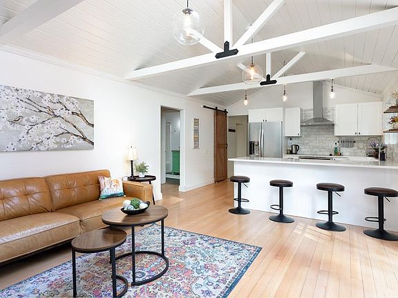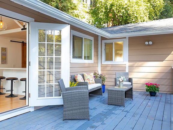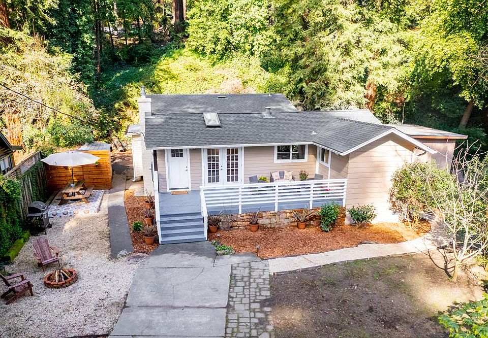 This spacious 1-story home in the sought-after Riverside Grove neighborhood boasts a newly remodeled kitchen, hardwood floors, vaulted ceilings, and plenty of private outdoor living space for entertaining. The living room with hardwood floors includes a gas-insert fireplace and French doors that open out onto the front deck. The open-plan kitchen features quartz counters, all-new appliances, a large pantry, and a sun-filled window looking over the front garden. The home is situated on a quiet cul-de-sac just a few blocks from Highway 9. Here you can retreat from the hustle and bustle of city life and be surrounded by the serenity of the forest. The mountain community of Boulder Creek offers everything you need for a relaxed lifestyle, including grocery stores, boutiques, restaurants, parks, a community pool, and activities for all ages. Just 30 minutes to Silicon Valley, 40 minutes to the Santa Cruz Beach, and 10 miles to Big Basin State Park.
