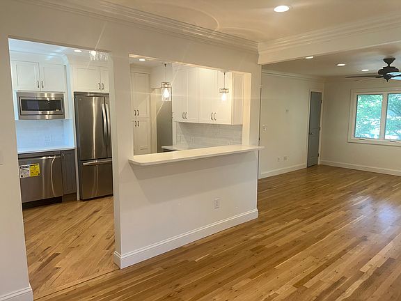 Experience refined living in this move-in ready 3-bedroom, 1.5-bath apartment nestled on a quiet dead-end street. The home showcases gleaming hardwood floors, central air, and a designer kitchen featuring quartz countertops, a stylish breakfast bar, and premium stainless steel appliances. Enjoy the convenience of both garage and driveway parking along with ample storage. Ideally located close to transportation, this residence combines modern luxury with everyday comfort an exceptional opportunity not to be missed.