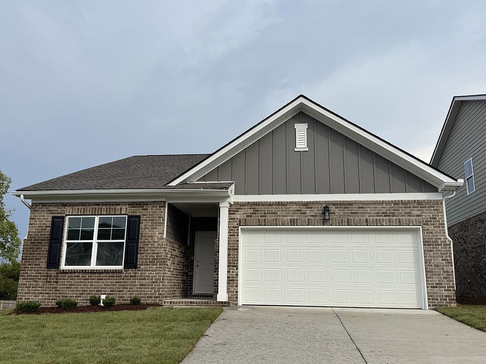 Homesite #38: This one-story Bledsoe plan lives large with three bedrooms and a spacious, open-concept layout. Here, you'll find two secondary bedrooms and a full bathroom off the foyer. Around the corner, a convenient utility room is situated at the garage entry. Beyond the foyer, a large living room welcomes you with a high, sloped ceiling. An adjacent breakfast area lends access to a rear covered patio where dining can be extended outdoors. At the heart of the home, the kitchen is curated featuring a quartz-topped island, stainless appliances, pantry closet, and a window above the sink. The primary bedroom is located off the living room and features a generous walk-in closet, dual vanity, tiled walk-in shower, and linen closet.