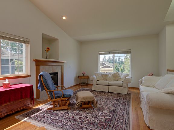This pristine home is nicely sited for quiet, privacy, and pleasant territorial views. The open floor plan, high ceilings & skylights ensure light on even the gray days, and the hardwood floors and fireplace give that warm, at home feeling. The large downstairs rec room has durable laminate flooring that also looks great - perfect for an activity area. Need more storage? This home can solve that problem - there is a place for everything! Close to downtown, I-5 & trails. It's perfect!