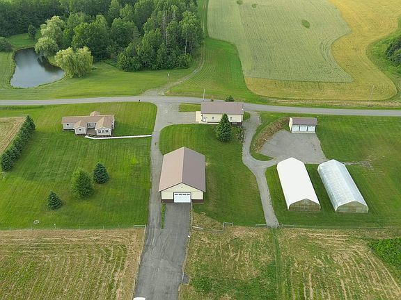 Large spacious kitchen with lots of windows for natural light and to enjoy the views, multi zone heat and a new 5 head heat pump system for total comfort. All beautifully landscaped. A split-level garage/workshop. The upper garage level has epoxy finished floors with radiant heat, a storage loft, in the back there is a 10x28 office that is fully furnished. Plus, a full bathroom with shower! This space is immaculate please see the photo's. The lower 'shop' level has plenty of workspace, floor drain, cold room for food and vegetable storage, 200-amp electrical service and generator hook-up. high efficiency wood oil boiler heats this space and the home. constant pressure well water system pump control for the entire property. Custom powder coater metal staircase to the garage level. Floor has hydronic heat thermostat. There is a 40x60 barn built in 2011. This one has two 12' x16' overhead doors. Storage rack system along the west wall and overhead storage. Water and electric inside, removable gate system for animals. Plus, an office space with heated floors. Moving along there are 2 Rimol High Tunnel, with water plumbing and electric hydronic air heating in both. There is a 16x32 storage shed also with 3 10x10 doors. This building houses the coal boiler for the High Tunnels. All this and 162 surveyed acres with mix of woods and fields/pasture ( all fencing, and gates included) hundreds of feet of waterfront on a secluded stream. Fish for Brook Trout or Kayak! Wildlife abounds in this amazing habitat. AMAZING property you must see to appreciate all the details!