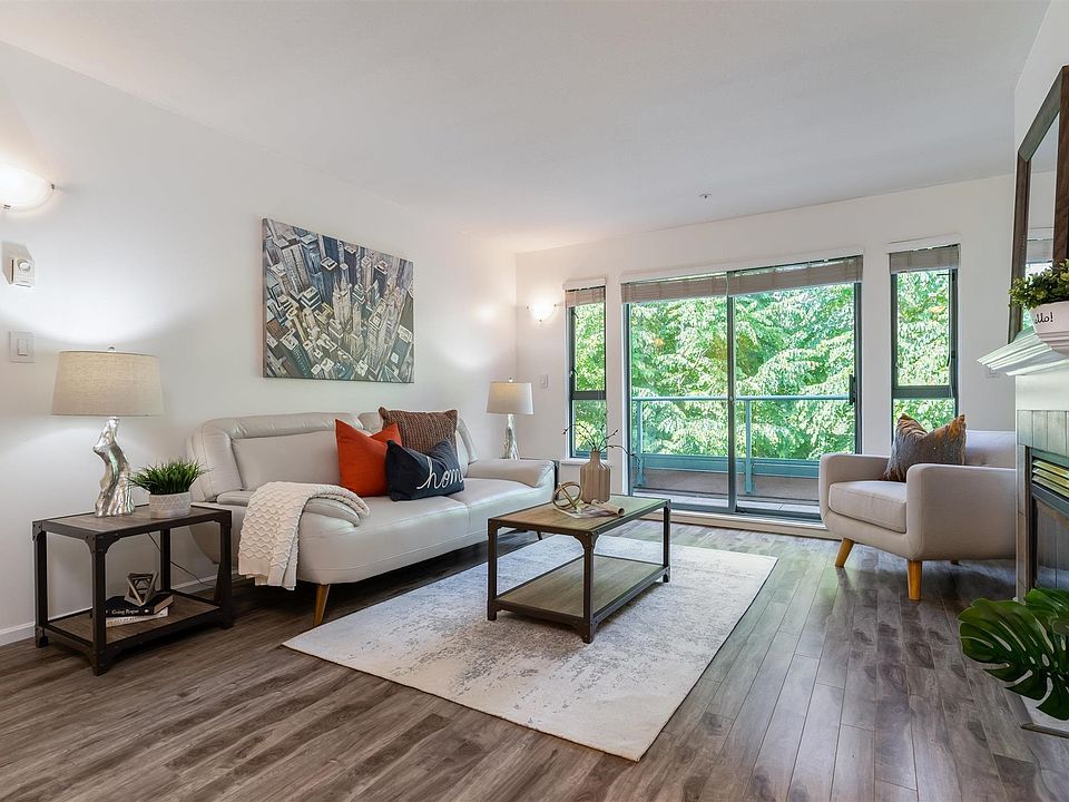 TOP FLOOR PENTHOUSE WITH STUNNING VIEWS! Spacious 2 bedroom home featuring an expansive balcony with multiple access points. Floor-to-ceiling windows showcase nature's seasonal beauty: spring blossoms, lush summer greenery, fall's vibrant colours, and winter's snow-capped peaks. Updated throughout with modern finishes. Primary bedroom includes ensuite bath and ample closet space. The outdoor area is perfect for entertaining while enjoying North Vancouver's natural beauty. Secure parking and storage included. Pet-friendly with rentals allowed. Conveniently located near transit with easy bridge access and minutes to amenities. Experience panoramic views changing beautifully year-round in this must-see penthouse!