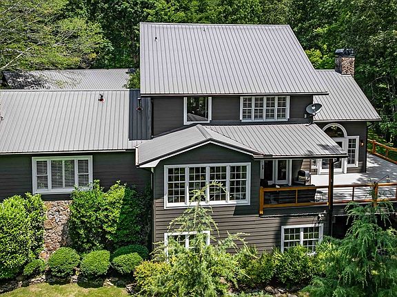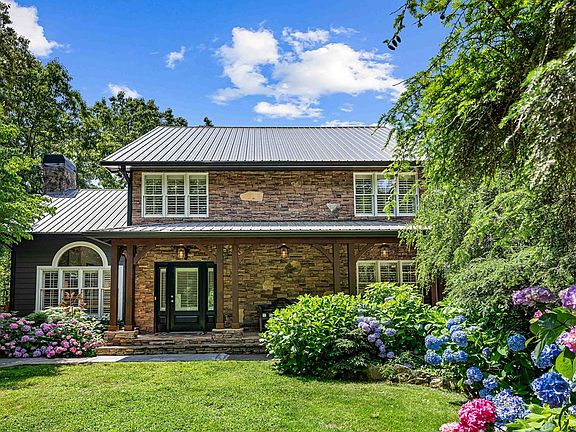 Nestled in the heart of the Blue Ridge, this stunning 4-bedroom, 4-bathroom home offers the perfect blend of mountain serenity and everyday convenience. Located just 5 minutes from town with all-paved access, this beautifully maintained property is a rare find. Step inside to discover a spacious and inviting interior, where natural light fills every room. The main level features an open-concept living area with a floor to ceiling fireplace, a well-appointed kitchen with ample counter space, and a dining area perfect for family gatherings or entertaining guests. Each of the four bedrooms is generously sized with private bath, offering comfort and privacy for family and visitors alike. This home is designed to be low maintenance incooporating composite siding, a metal roof, trex decking, and beautiful stone accents. Outside, mature landscaping surrounds the home, creating a peaceful, park-like setting. Enjoy morning coffee on the covered porch or relax in the shade of the trees after a day exploring the mountains. The two-car garage with storage above and a split unit for heating and cooling and additional carport offer plenty of room for vehicles, storage, or outdoor gear. Whether you're seeking a full-time residence, mountain retreat, or investment property, this home checks every box—comfort, location, and beauty. Don't miss your chance to own this exceptional piece of mountain living!