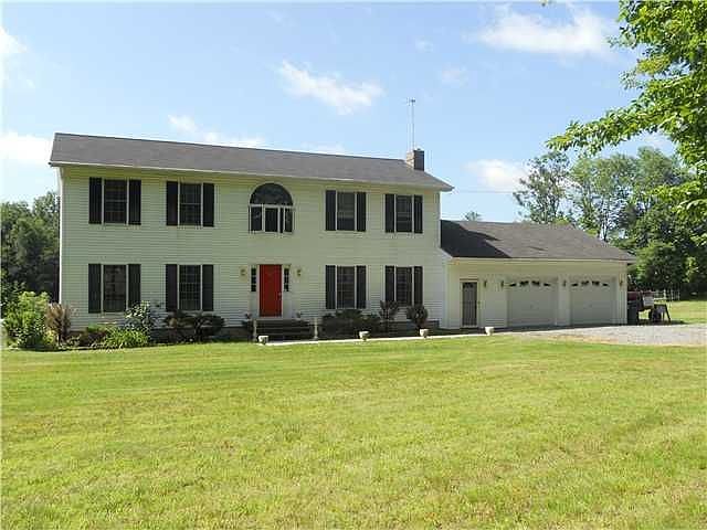 This spacious center hall colonial is situated on 12 beautiful country acres. Bring your horses, large barn, 3 stalls, corrals, spacious deck off kitchen, pergola over patio, step inside, hardwood floors downstairs, 4 bedrooms, 2.5 baths, master bedroom w/walk-in closet, powder room, master bath w/whirlpool tub, formal dining room, living room, formal living room, upstairs sitting room atop foyer w/arched window. Large 2 car garage, a 20k propane backup generator(auto). All this in a peaceful country setting with lots of room for a pool! Great home for entertaining. Just move-in!