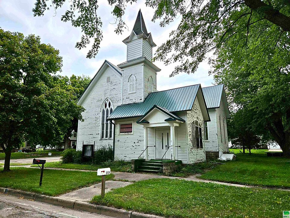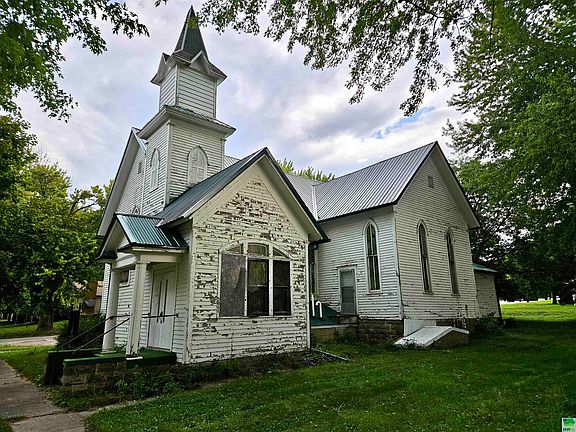Here's a unique property in Early, Iowa looking for a new owner. Bring your imagination and a paint brush, roll up your sleeves and get started. You can utilize the refurbished living quarters while you build out your dream space. Lots of mechanical improvements have been made and a metal roof was installed everywhere except the top of the bell tower (yes the bell is included). With nearly 3,000 square feet up and down, there is lots of square footage potential here. and while there is some parking in the street, the 11,250 square foot lot could accommodate additional off street parking or a possible garage. CASH Buyers only please.