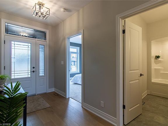 - Interior Features: Central Vacuum Roughed-in, Rough-in Bath, Sump Pump, Air Exchanger, Auto Garage Door Remote(s)
