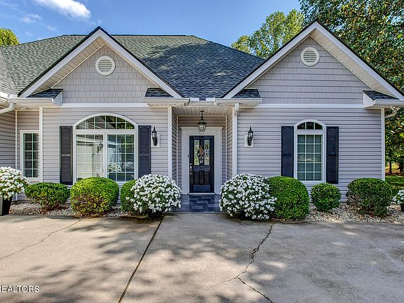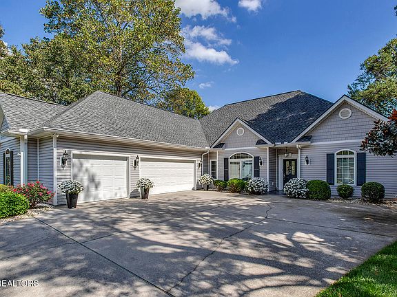 Location, location, location! This beautiful custom-built home is on the market for the first time in Tellico Village. Offering 2,700 square feet of living space, it's ideally situated on the Toqua golf course with easy access to putting greens, the driving range, Toqua restaurant, and Toqua Pavilion—where plenty of music and activities take place. If you'd rather drive your golf cart, there's convenient access on the right side of the home. The property features a large three-car garage with ample room for a workshop, golf cart, and vehicles. Inside, hardwood floors grace the entryway, dining room, and kitchen, while tray ceilings enhance the dining room and master bedroom. Crown molding runs throughout the home, complementing a great open floor plan that includes a stunning floor-to-ceiling stone fireplace flanked by custom cabinets on both sides. The custom kitchen boasts cabinetry with soft-close drawers, a raised bar area with plenty of room for stools, a wet bar with wine cooler, extra built-in cabinets, all the stainless steel appliances are less than 5 yrs old, and a spacious pantry. The eat-in area provides awesome views of the golf course. Off the living room, a lovely sunroom with tile floors offers even more scenic vistas, and a patio extends from both the sunroom and breakfast area.