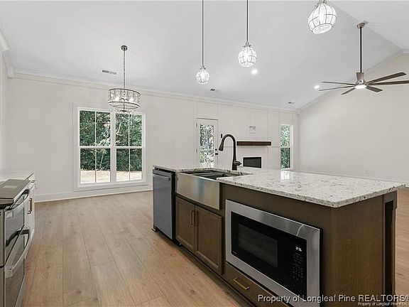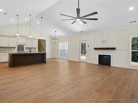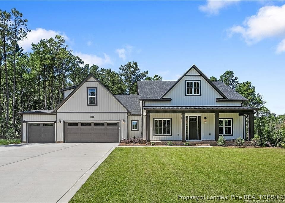 Escape the noise of the city and embrace peaceful country living with this stunning custom farmhouse, perfectly positioned on a private 2-acre homesite on the north side of Fayetteville. Surrounded by a serene wooded backdrop, this 2,600 square foot retreat offers the ideal balance of seclusion, space, and convenience with easy access to town when needed. Thoughtfully designed with both comfort and style in mind, this 4-bedroom, 3-bath home welcomes you with soaring 10-foot ceilings in the foyer and formal dining area, opening into a bright and airy living space highlighted by vaulted ceilings in the great room and kitchen. Expansive windows frame picturesque views of the natural surroundings, bringing the beauty of the outdoors inside. At the heart of the home, the gourmet kitchen is designed for gathering and everyday living, featuring abundant soft-close cabinetry, exquisite stone countertops, a large center island, and an oversized walk-in pantry with custom wood shelving. The open layout flows effortlessly into the spacious living and dining areas, creating the perfect setting for entertaining or relaxing evenings at home. The primary suite offers a true private retreat, complete with a generous layout, custom wood-shelved walk-in closet, and a spa-inspired ensuite bath featuring dual vanities, a freestanding soaking tub, and a large tiled walk-in shower. Upstairs, a private suite with dual closets and a full bath provides the perfect space for guests, extended family, or a quiet home office. Step outside and enjoy endless possibilities with room to garden, create outdoor living spaces, or simply enjoy the quiet beauty and privacy that only acreage living can provide. Buyers can also take advantage of a 1% lender credit on the loan amount when financing through preferred lender Christy Strickland with Atlantic Bay Mortgage (910-574-2105).
