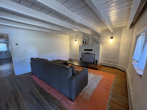 Seize the opportunity to live in the heart of downtown in this 2BD/2BA remodeled adobe home. Located off Ranchitos Road and across from Ledoux and the Harwood Museum - convenience is the name of this game. A large adobe wall protects this property from the road and enfolds this sweet home. Remodeled kitchen, bath and cozy rooms. Hardwood floors, wood beams, fireplace (aesthetic only) and clean white paint throughout make this a fresh take on traditional Taos. Mostly furnished, but room to add your own touches. Utilities (maintained in the owner's name) are an additional $250/month, tenant responsible for overages. Available immediately through 6/30/26. No pets.