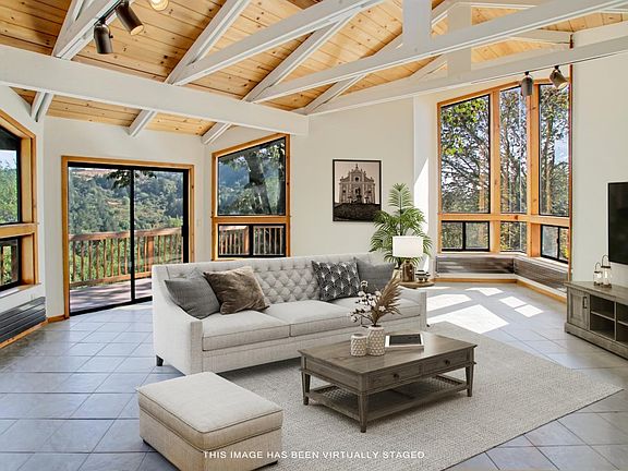 Unique contemporary home sitting privately on 23.4 sun-drenched acres dotted with imposing heritage oaks. This 4 bedroom 2.5 bath home of 2437 square feet is located at the end of private road in desirable Skyline location. 1019 square foot detached guest house offers potential for caretaker or extended family. For gardeners/family farmers the property is ideal with its large fenced area featuring diverse orchard, irrigated raised-beds and deluxe chicken coop worthy of your most discriminating chickens. Several pastures could be used for livestock or agriculture and have existing shelters. This neighborhood is close to numerous Open Space Preserves: Windy Hill, Russian Ridge, Coal Creek Skyline Ridge. These destinations offer miles and miles of trail access for hikers, bikers and equestrians.