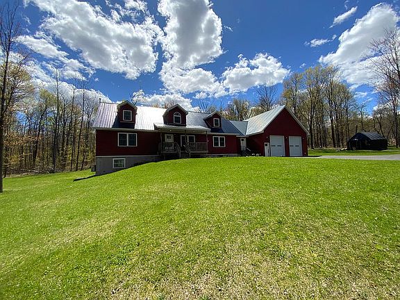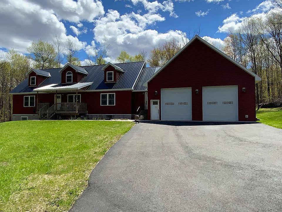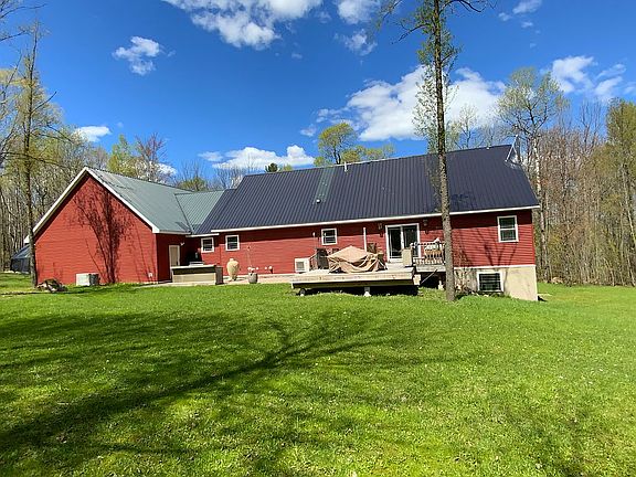 Luxury Living with privacy and acreage. Come view this 2015 one of a kind super insulated high energy efficient home set on 16.9 ac with privacy and seclusion. Minutes from Malone, Titus Mountain for skiing and Lake Titus. Features include 4 large bedrooms with walk in closets, 3 baths with 3400 S.F. on 2 floors, plus a nicely finished basement with in floor radiant heat with a game room, den, and half bath; adding another 2100 SF of living space. Luxury Vinyl tile flooring and new carpet throughout installed in 2021. Recessed lighting and fiber optic high speed cable. Breezeway from garage and entryway. 3 heat pumps for a.c., motion sensor alarm system, triple pane thermal windows. Extensive kitchen cabinets with quartz counter tops stainless steel appliances and center island area with cooktop, double ovens, and tons of storage. Large master suite includes, Jett tub, walk in closet, and enclosed shower. Three other bedrooms rooms (Two with generous walk in closets) for great storage. Created new finished walk in closet/storage room in 2021 between upstairs bedroom and Shop/mancave. Newly luxury finished Shop/Man Cave over garage. Features built in cabinetry, extensive new storage, complete ducting system for dust collection and 220V outlets outlets throughout in walls and ceilings for equipment. Room could also be easily converted to additional living space. Vinyl flooring and extensive foam insulation to keep warmth. Other features include radiant in floor heat in finished 4+ car garage and basement with running hot/cold water and a full width drain. 12' garage doors with automated garage door openers. Gasification wood stove in finished basement. Large sun deck with gas grill included. Covered porch. Large paved drive with spacious turnaround. Don't miss the opportunity to own this beautiful home. Hardwired full house 22KW generator available with full price offer. Buyers agent 2.5%