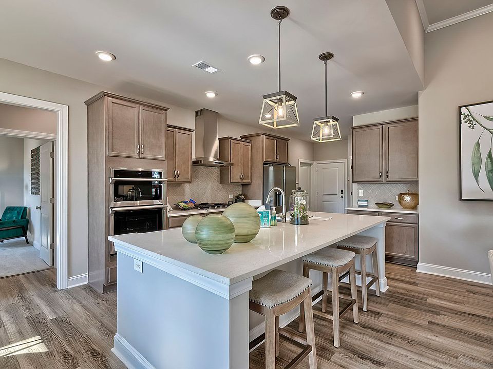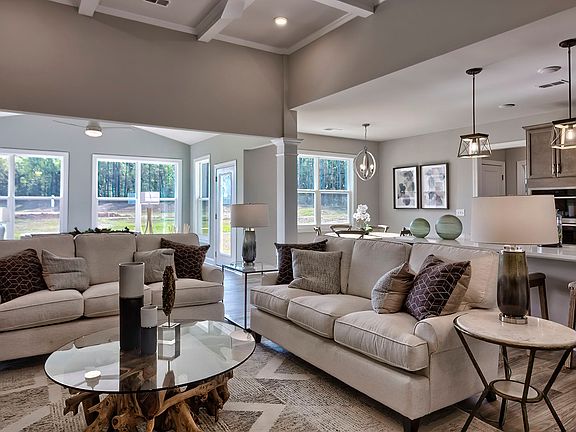 The Ransford is a modern home that features the best design and amenities. The kitchen boasts beautiful granite countertops, while the family room has an elegant coffered ceiling. There is also a cozy fireplace in the family room for those chilly winter nights. Upstairs, a bonus room with its own bathroom offers extra space to relax or entertain guests. Outside, an extended porch provides plenty of outdoor space for grilling and relaxing on warm sunny days. With its convenient features and stylish touches, The Ransford is the perfect home to enjoy life's little moments with family and friends.