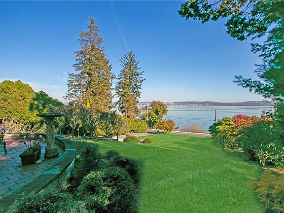 First time offered in 26 years, RIVER EDGE COURT is majestically sited overlooking the Hudson River and features a half interest in the adjacent 100' Hudson Riverfront lot, 220 River Road. Secluded and far removed from River Road. Stunning brick/limestone villa with large rooms, Italian tile roof, extensive perennial gardens and brick terrace in the large rear yard adjoining the jogging trail. Enter via grand Italian tile/limestone steps to a rounded river-view terrace. Arrive in the outsized family room with a 10' ceiling, whitewashed stone fireplace, custom bookshelves, cabinets, mahogany wet bar/party kitchen and sliding doors to terrace. Upstairs, a spacious living/dining room with stone WBF and sliding doors to 60' full balcony boasting 180' view of Cuomo Bridge. Large chef's kitchen, breakfast room, full bath, two guest bedrooms and master suite with a white slab Carrara marble bath and walk-in closet. Ground floor features a terrazzo, radiant heated floor, storage, 2 car garage.
