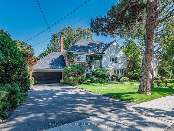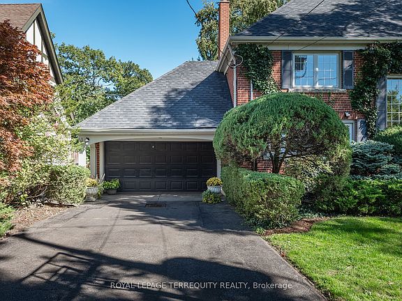 Exceptional Riverside Drive Residence. Rarely available 75' by 226' Ravine Lot. Solid Family Home with space to grow into. Gracious Living room centered around a stately open gas fireplace. Dining room with views to the wooded backyard. Mid Century modern eat-in Kitchen with access to the elevated oversized deck - perfect for morning coffee or twilight wine. Convenient powder room and covered access to the double car garage complete the main floor. Four generous bedrooms on the second - primary with a 3 piece ensuite overlooking the ravine. Wonderful potential to develop the loft attic. (Make sure to walk up the stairs and view) Above grade walk out basement to stone patio from the home office/bedroom. Full size recreation/games room - billiards anyone? Separate laundry room plus ample storage in the utility room. Steps to "Lucy Maud Montgomery" Parkette. All the above on a coveted street in Swansea with easy walking access to the Subway, Bloor West Village Shops & Restaurants, The Old Mill and Humber River Trails. 12 minutes to the financial district and minutes to the Martin Goodman Trail Boardwalk siding onto Lake Ontario. Fantastic School Districts. Move in, live and personalize at your leisure.