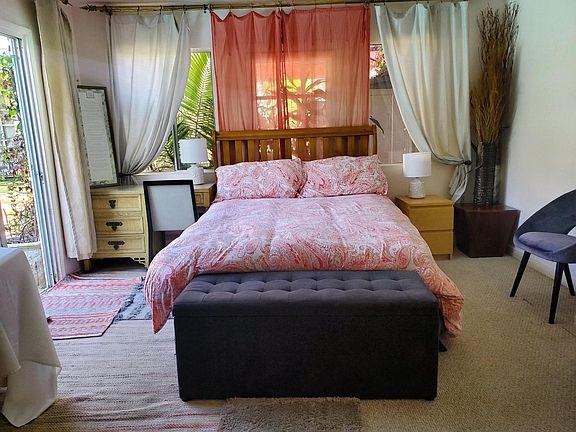 AVAILABLE NOW PRIVATE GUEST HOUSE Beautiful garden oasis in the center of Beverly Hills! Private entry lined with fruit trees and tropical plants leading to a full sized pool. The lease is for a detached guest house with 2 bedrooms, 1 bathroom. Fully furnished with kitchenette, 1 queen bed, 1 full size bed, and washer and dryer. Blocks from world class shopping and dining. Minutes from Rodeo drive Beverly Hills. Parking available at additional cost. Guest house is approximately 600 sq. ft. Coveted Beverly Hills school District. Owner pays electricity, Gas, Pool, Sewer, Trash Collection, Water
