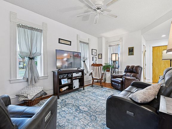 Welcome to this nicely updated home. As you enter this adorable home, you'll be greeted by a spacious living room that flows seamlessly into the dining area and kitchen with center island and access to the deck. Upstairs you will find 3 bedrooms and 2 baths, including a spacious private primary bedroom suite with walk-in closet, and laundry area. The home offers lots of natural light and clean bright spaces, an open staircase and new furnace and driveway in 2024, new washer and dryer in 2023, welcoming front porch complete with a swing, backyard deck, and oversized 2+car garage with ample storage, workspace and workbenches. The backyard offers plenty of space for entertaining, gardening, or simply relaxing under the trees. Close to city park, sports field and Legion Pool Park. This home is waiting for you to call it home!