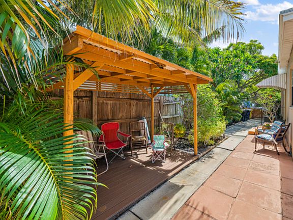 This boutique Florida-style apartment unit is just a block from vibrant downtown Lake Worth Beach and the Intracoastal Waterway. This large apartment unit has two entrances, one of which opens to a shared patio surrounded by palms and flowering plants.