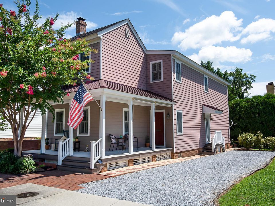 Your dream house awaits in the most perfect location! This delightful custom built home, being offered on one of the most sought after streets in Downtown Chestertown, and perfectly situated at the 'quiet end' of Queen Street, is only one block to the Marina, restaurants/shops, and overlooks Wilmer Park, with the Chester River beyond. Although this home has the true look of a an Period Colonial Home, it was actually newly constructed in 2006, on the original footprint of an older historic home. The owners have not only built , but meticulously cared for, and loved it throughout the years, being located so conveniently to all the things everyone loves about Historic Chestertown. As you walk up to the house you will find the porches very inviting and you will get so much enjoyment being out there at any time of day. As you come in you will find a front living room with a wood burning fireplace that adds warmth and enjoyment to the whole home. through to a cozy dining room or extended living room . Next, a pristine kitchen, refreshing and full of light, which offers plenty of storage and counter space. There's a main level laundry offered and then what could be a Primary Bedroom at the back of the house (with a full bath), or it can be used as a family room, as it is currently now. Through out the house which is not standard, but was thoughtfully and custom added, are very ample, oversized closet spaces for plenty of storage. You will also find an upstairs staircase to the floored attic that allows plenty of room for all your additional storage needs. On the second floor you have the option for a very spacious primary bedroom at the back of the house and an additional 2 rooms which have been a guest room and office . Through out the house you will find gorgeous plantation shutters to help allow the sun in when you want or help keep it out. Very tastefully done. As you settle into the heart of downtown you will be able to enjoy the Traditional Farmers Market on Saturdays , The well known Tea Party Festival , The Dickens Holiday Celebration and Down Rigging Weekend, just to name a few. The Garfield Center is always a favorite with a line up of theatrical shows and musical attractions. You will quickly fall into your favorite enjoyments and pass times that Chestertown has to offer . Some of the favorites of downtown will be the coffee spots, eateries and dining options which can all be with in within a few minute walk. Many details about this house can still be shared but come see and feel the welcome and the ease of a well built costume home that has been well taken care off and ease of low maintenance.