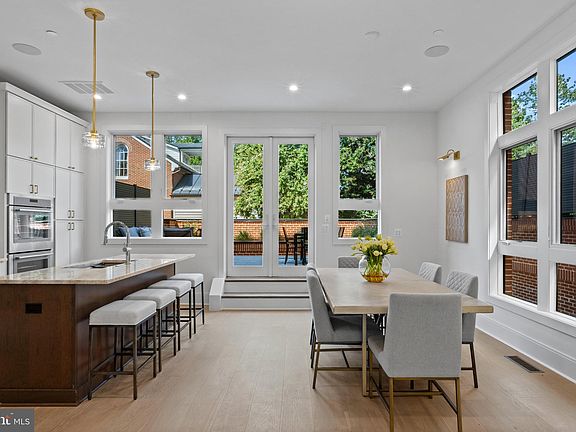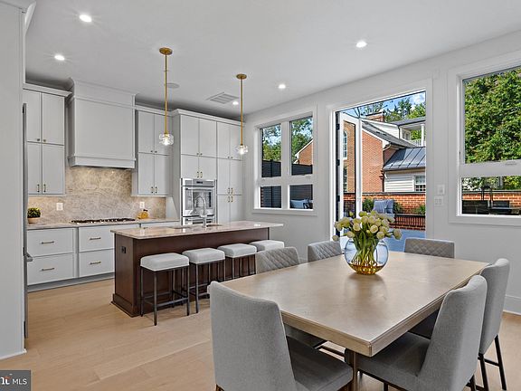 Situated on Old Town Alexandria’s most prestigious street, this River Row Elevator Residence at 223 South Union Street is the last available home of the six newly constructed, LEED Gold-certified homes redefining luxury living along the Potomac River. Developed by the visionary JC Development, this four-level residence offers a rare fusion of refined design, advanced engineering, and an unbeatable waterfront location—with no HOA or condo fees. Crafted from solid steel and concrete and wrapped in classic brick, the residence spans 3,366 square feet and rises four stories via a private elevator. Architectural integrity is evident throughout with 12-foot ceilings, 9-foot solid core doors, 8.5-inch white oak flooring, and expansive Andersen windows create a light-filled, contemporary interior grounded in timeless materials. The main living level features an open-concept layout flowing to a 440-square-foot outdoor terrace finished in imported Spanish porcelain tile—ideal for entertaining or alfresco dining. The gourmet kitchen is appointed with soft-close American Woodmark cabinetry, Taj Mahal quartzite countertops, and a professional-grade appliance suite: Thermador 36-inch gas range, double electric wall ovens, Bosch French-door refrigerator, Thermador dishwasher, and Sharp microwave drawer. Every detail is designed for elevated daily living and seamless entertaining. Four spacious bedrooms—each with ensuite marble-clad baths and Kohler fixtures—offer comfort and privacy. The top level opens to a 189-square-foot rooftop terrace with city and river views in select homes, enhanced by a fourth-level wet bar featuring Taj Mahal quartzite counters and a Summit beverage refrigerator. LEED Gold certification reflects the residence’s commitment to sustainability and efficiency. High-performance systems include recessed LED lighting, 2-zone Goodman HVAC with Ecobee smart thermostats, electronic air filtration, humidifiers, a Rinnai tankless water heater, and a full home sprinkler system—resulting in lower utility costs and superior indoor air quality. Additional highlights include an 800 lb-capacity private elevator, integrated surround sound, Akuvox smart doorbell, multiple laundry hookups, and a lower-level family room with a second wet bar, Taj Mahal quartzite counter, and dual-zone Newair beverage refrigerator—ideal for casual gatherings or movie nights. The oversized two-car garage (21’ x 20’) includes a low-profile door for enhanced headroom and a Kwikset keypad entry for added convenience. Each residence comes with a California Closets credit for customized wardrobe systems. This is a rare opportunity to own newly built luxury on one of Old Town’s most iconic blocks—just one block from King Street and steps from the Potomac River and waterfront promenade. With over 20 dining options within three blocks, four parks within six, and proximity to Lyles-Crouch Elementary School, River Row supports an effortless, enriched lifestyle. Commuters enjoy quick access to Reagan National Airport (3.7 miles), King Street Metro and Amtrak/VRE Station (1 mile), and key routes to Washington, D.C. and National Landing. Developed by JC Development—an esteemed firm with 25+ distinguished projects across the region—River Row is a testament to modern luxury grounded in Alexandria’s historic charm. Residence 223 is more than a home—it’s a landmark of thoughtful design, sustainable living, and timeless elegance.