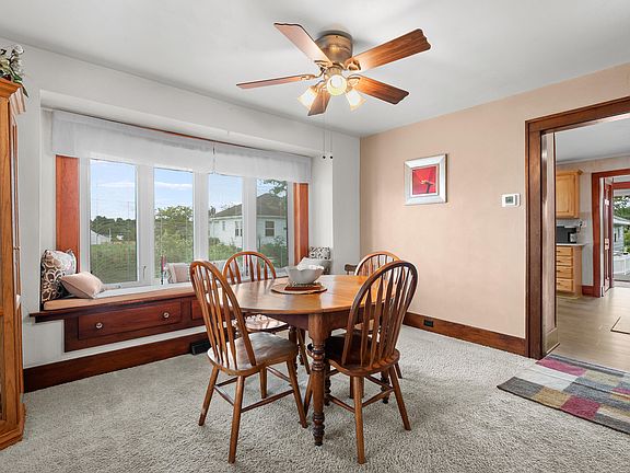 Beautifully updated home in the middle of Portage! Features include a spacious kitchen with hickory cabinets, granite tops, vinyl plank flooring, custom pantry, all appliances and updated half bath. An inviting open dining room with bench seat and large windows for good sunlight, plus a living room with built-in shelves, original woodwork throughout. Enclosed front porch with new windows adds charm. Main level includes a bedroom or office. Upstairs has 3 bedrooms and a full bath. Finished basement offers extra space with a half bath. Recent updates: 2024: Roof, soffit, tyvvek wrap and vinyl siding, gutters, patio slider to deck, 24 replacement windows, A/C and water heater, dryer and new washer also included.