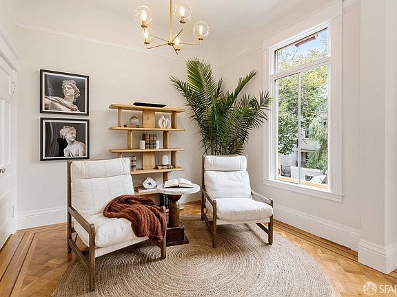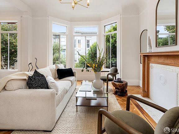 Welcome to 223 Scott St, a stunning top-floor TIC offering an impressive 2,357 square feet of living space across two levels in Hayes Valley. On the upper level a grand primary suite spans the entire top floor and is bathed with light from 8 skylights, with tall ceilings, an ensuite bath and ample space for an office, lounge and creative retreat. On the lower level, the spacious front-facing living room overlooks the mature tree tops on Scott Street and features a decorative fireplace. Elegant pocket doors connect it to a sun-drenched bedroom, highlighting classic wainscoting and period charm. Detached on three sides, this home is bathed in sunlight from its large south-facing windows. The bright formal dining room includes timeless details with a built-in corner cabinet and crown moldings. The kitchen is complemented with a breakfast nook and pantry, while separate toilet and shower rooms add convenience. Additional highlights include a tandem parking spot, a dedicated storage room with a garage-level half bath and shared laundry. Directly on the Wiggle, steps from Duboce Park and Alamo Square and moments from the shops, cafes, bars and transit along Haight and Divisadero, this location puts everything you love about city living right outside your door.