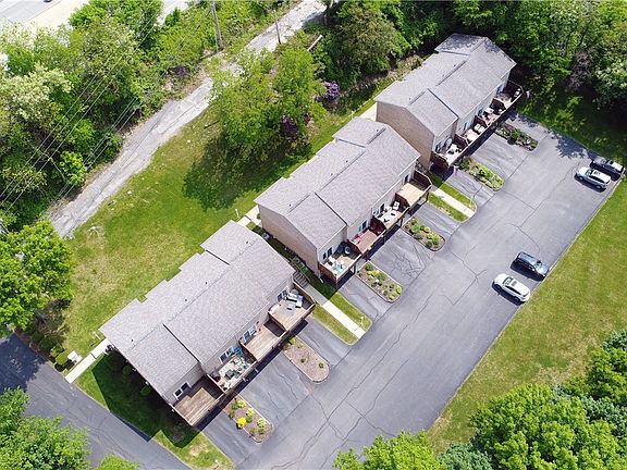 These condos are Center Townships best kept secret. Condo is located at the end of a no thru way street. Electric heat pump for heating and cooling 11 years old and serviced yearly. Vinyl plank flooring throughout living/ dining room combo opening to a private 15 x 11 rear deck overlooking treed common area. The efficient kitchen has vinyl flooring with appliances included. Conveniently located powder room on 1st floor. Spacious two bedrooms on the upper level with nice sized closets and a full bath. The full bath had a tub to shower conversion last year.