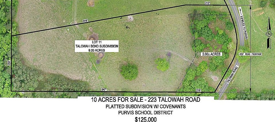 This 10 Acre homesite includes Lot 11 of the Talowah Bend Subdivision and 2 additional acres. This platted subdivision has a restricted covenants. It consists mostly of Argentine Bahia grass pasture with some large mature oak trees. This property currently has AT&T Communication, North Lumberton Water and Pearl River Valley EPA power available on the property. Lot 10 a 6.72 acre parcel with 2 barns, water well, & lighted cattle working facility may be available also for purchase. This entire property is located in Purvis School District. Text, Call, or Email if interested. Use this phone # (601)270-4982 only, do not use the contact agent button on Zillow. It will not lead you to the seller.