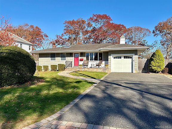 Charming 3 Bedroom Ranch in Country Village section featuring - kitchen with stainless steel appliances, updated bath with skylight, hardwood flooring, Anderson windows, full finished basement with fireplace and entertainer's bar, central air, sliders off kitchen leading to large trex deck - great for entertaining, 1 car garage, 8 zone inground sprinklers, shed, walk to Heckscher State Park and enjoy 1,600 acres of sunning views and many amenities, close to Sunrise Hwy, and LIRR